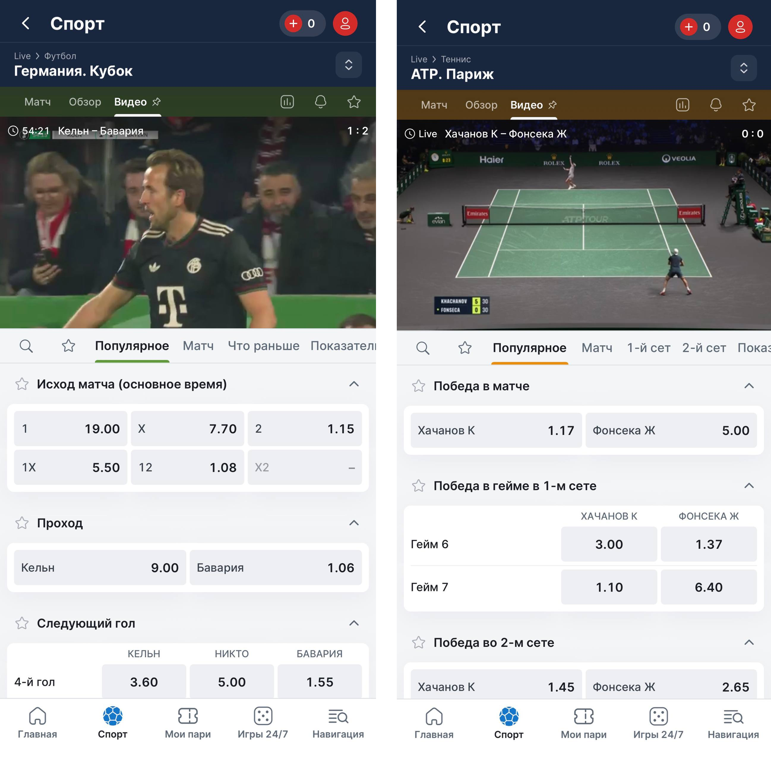 В разделе «Live» букмекерская компания «Фонбет» предлагает широкий выбор событий. Здесь можно делать ставки на матчи по футболу, баскетболу, хоккею и другим популярным видам спорта. Особое внимание уделяется престижным чемпионатам и важным турнирам. Также букмекер предлагает ставки на киберспортивные дисциплины, включая киберсимуляции футбола и баскетбола, где участвуют реальные игроки. Видеотрансляции этих событий можно смотреть прямо на сайте или в мобильном приложении.