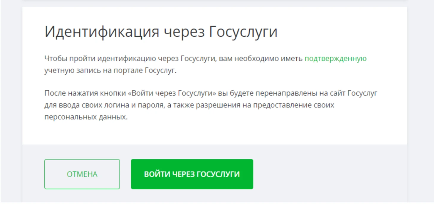 Чтобы пройти процедуру верификации через этот портал, нужно иметь подтвержденный аккаунт на сайте Госуслуг. Если такой имеется, то нажмите на поле «Пройти идентификацию», после чего нажмите «Войти через Госуслуги» и вас перебросит на официальный сайт Госуслуг, где запросит ввод логина с паролем, которые нужно будет ввести в открывшемся окне сайта.