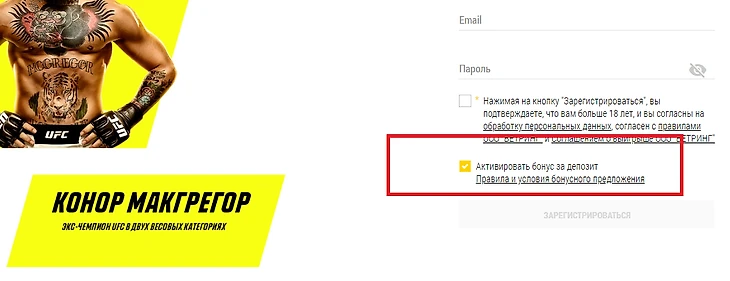 • В первом окне регистрации поставить галочку напротив пункта “Активировать бонус”.