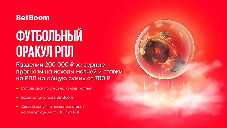 Букмекерская компания BetBoom проводит акцию «Футбольный Оракул» в рамках 24-го тура Российской Премьер-Лиги. Разыгрываются фрибеты на сумму до 200 000 рублей.