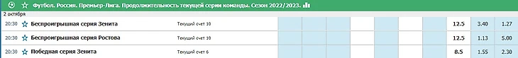 На то, что питерцы продлят серию как минимум до 13 матчей аналитики букмекерских контор дают около 72%. В ближайших турах действующий чемпион сыграет с «Ростовом», «Факелом» и «Пари НН».
