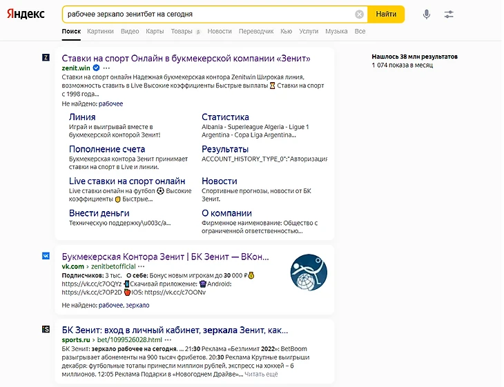 Как отличить официальный сайт-зеркало БК Zenit от мошенников