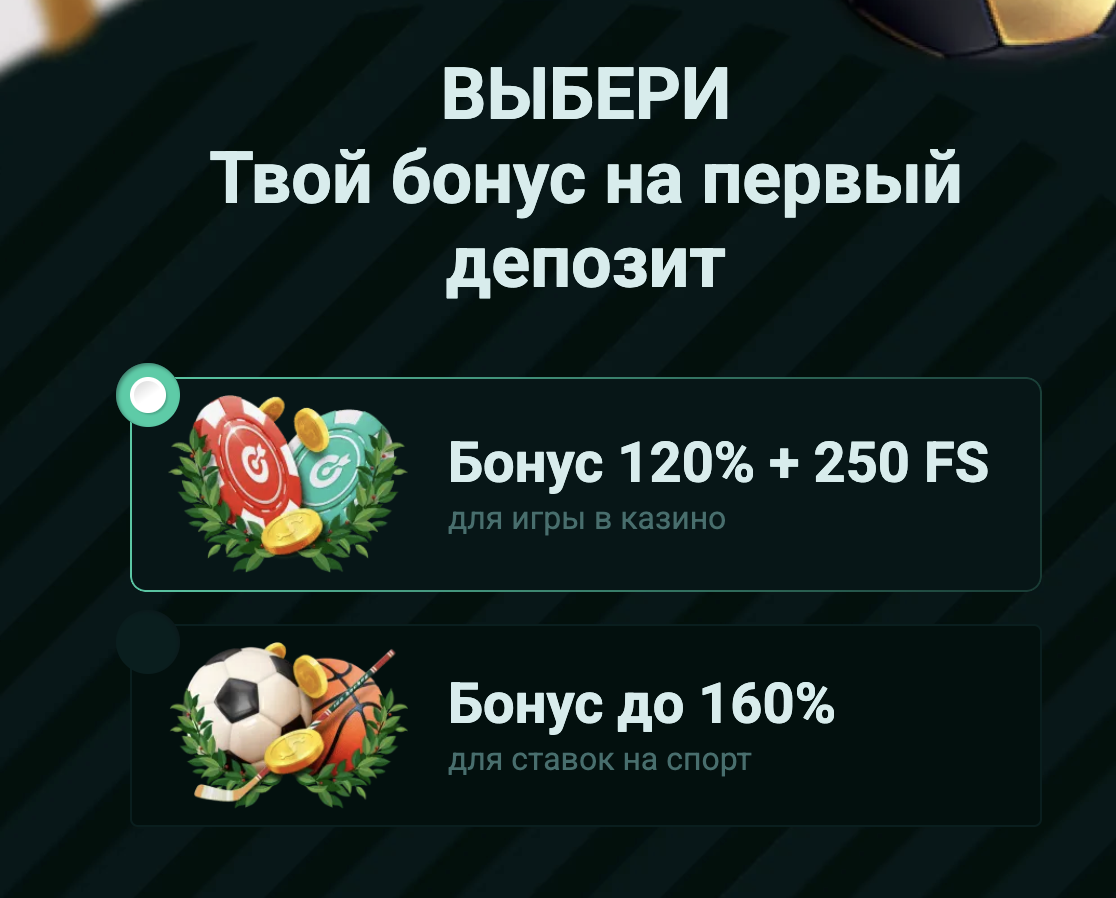 За создание учетной записи на сайте казино предусмотрен бонус +120% и 250 фриспинов за депозит от 2 000 рублей. При пополнении счета в течение часа от момента создания аккаунта, размер бонуса равен +120%. Максимальная сумма бонуса 25 000, максимальный вывод денег в рамках акции 250 000.
