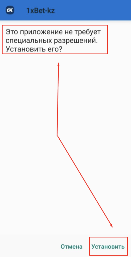 Установка приложения «1хБет» не займет много времени. После открытия файла появится окно с полем «Отмена» и «Установить». Необходимо нажать на последнюю кнопку. Это запустит процесс установки.
