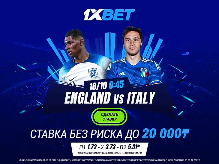 Ставка без риска от 1xBet на матч Англия – Италия