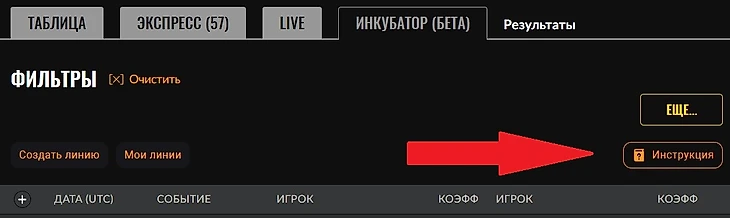 Инкубатор. В этом разделе беттеры могут самостоятельно создавать линии, по которым другие игроки будут делать ставки. Для этого нужно пополнить свой залоговый баланс, выбрать игру на странице создания линии и указать сумму залога за линию. Принимайте ставки у других игроков и почувствуйте себя в роли букмекера. Но помните, что если ставка беттера сыграла, вы должны выплатить ему выигрыш из своего залогового баланса. Подробные правила использования данной функции вы найдете в разделе «Спорт» – вкладка «Инкубатор» – кнопка «Инструкция».