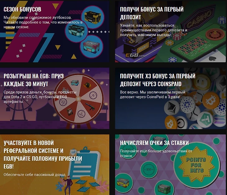 Очки для покупок различных игровых предметов и скинов в магазине вы можете заработать на ставках. За каждое пари на $1 с коэффициентом от 1.5 и выше вы получаете 10 очков. Каждая ставка на $1 в казино дает 2 очка. Чтобы ускорить набор очков, следует использовать специальные EGB-артефакты. Они дают от плюс 1% до плюс 20%.