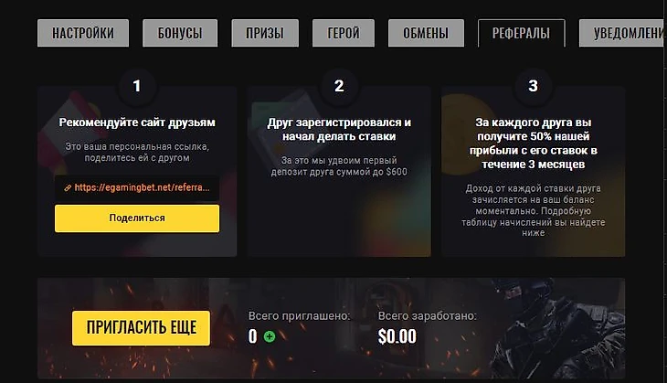 В разделе «Мои обмены» вы найдете ссылку для обмена, которой можно поделиться как с пользователями EGB, так и разместить на сторонних платформах. Пользователи, у которых включена опция, могут трейдиться между собой скинами.