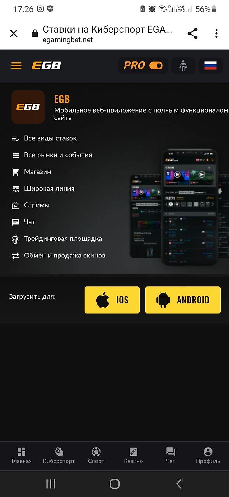 Также у EGB есть мобильные приложения для iOS и Android. При входе на сайт с мобильного устройства вверху экрана вы увидите баннер с загрузочной ссылкой. По клику на нее откроется новая страница с двумя кнопками. Тапните на нужную версию для скачивания программы. Софт для Android скачивается напрямую с сайта конторы, а вот для загрузки приложения на iOS пользователя переадресуют в AppStore. После загрузки файла нужно инсталлировать его на телефон или планшет.