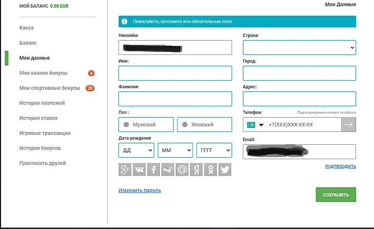 Для вывода денег необходимо подтвердить номер телефона, адрес электронной почты и заполнить «Мои данные» в личном кабинет. Чтобы оставить заявку на вывод потребуется: