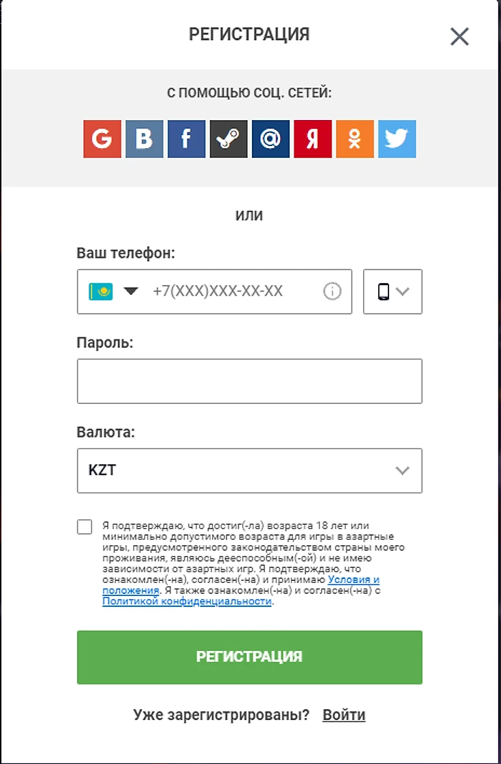 Вне зависимости от выбранной формы создания аккаунта потребуется дать согласие с правилами работы букмекерской конторы.