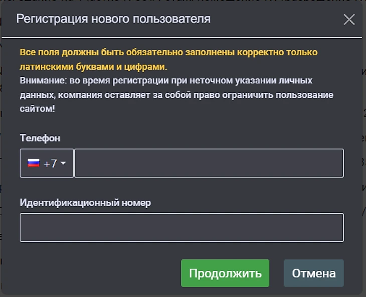 номер и серия паспорта для игроков из России;
