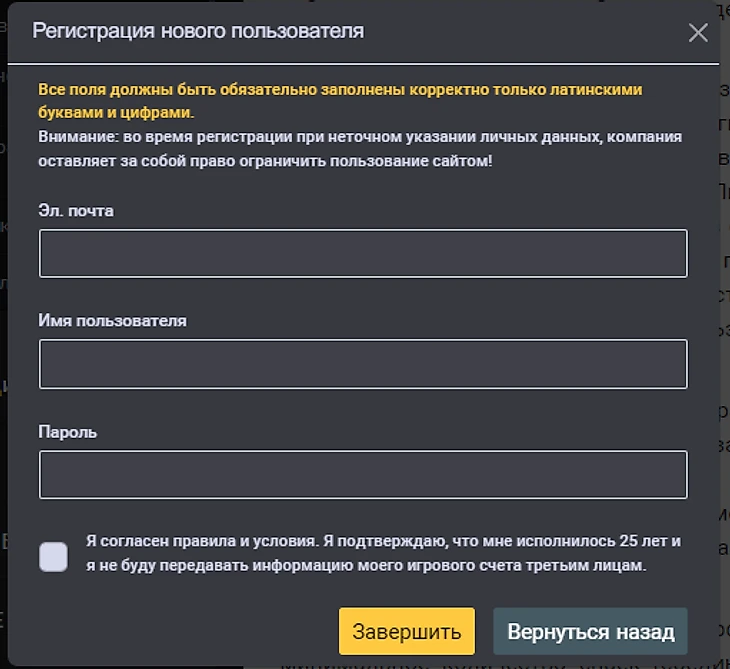 Анкета заполняется только латинскими буквами. Все данные должны быть достоверными. При выявлении различий, администрация Lider Bet оставляет за собой право ограничить пользователя. После заполнения всех полей необходимо нажать «Завершить».