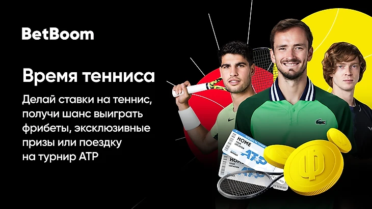 BetBoom запустил акцию «Время тенниса» для всех клиентов. Главный приз — поездка на турнир ATP. Заключай пари онлайн, забирай фрибеты и возможность поучаствовать в розыгрыше призов!
