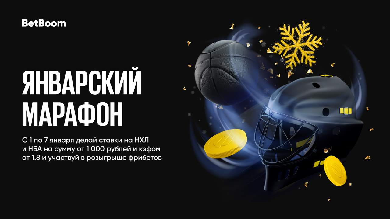 Новогодние праздники в самом разгаре, но спортивные матчи и не думали уходить в отпуск. Смотрите матчи с Панариным, Малкиным, Кучеровым? Или же планировали отдохнуть под матчи «Лейкерс», «Буллз»? Участвуйте в акции от BetBoom «Январский марафон», чтобы подогреть свой интерес к матчам.