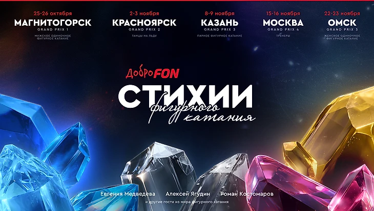В рамках благотворительной программы ДоброFON проект объединит пять ключевых направлений: мужское и женское одиночное катание, пары, танцы на льду и тренерство. Его символом станет уникальный Кристалл, который будет собираться по ходу этапов. Каждый амбассадор добавит в него частичку своего цвета, а на благотворительные цели будет направлено по 500 000 рублей.