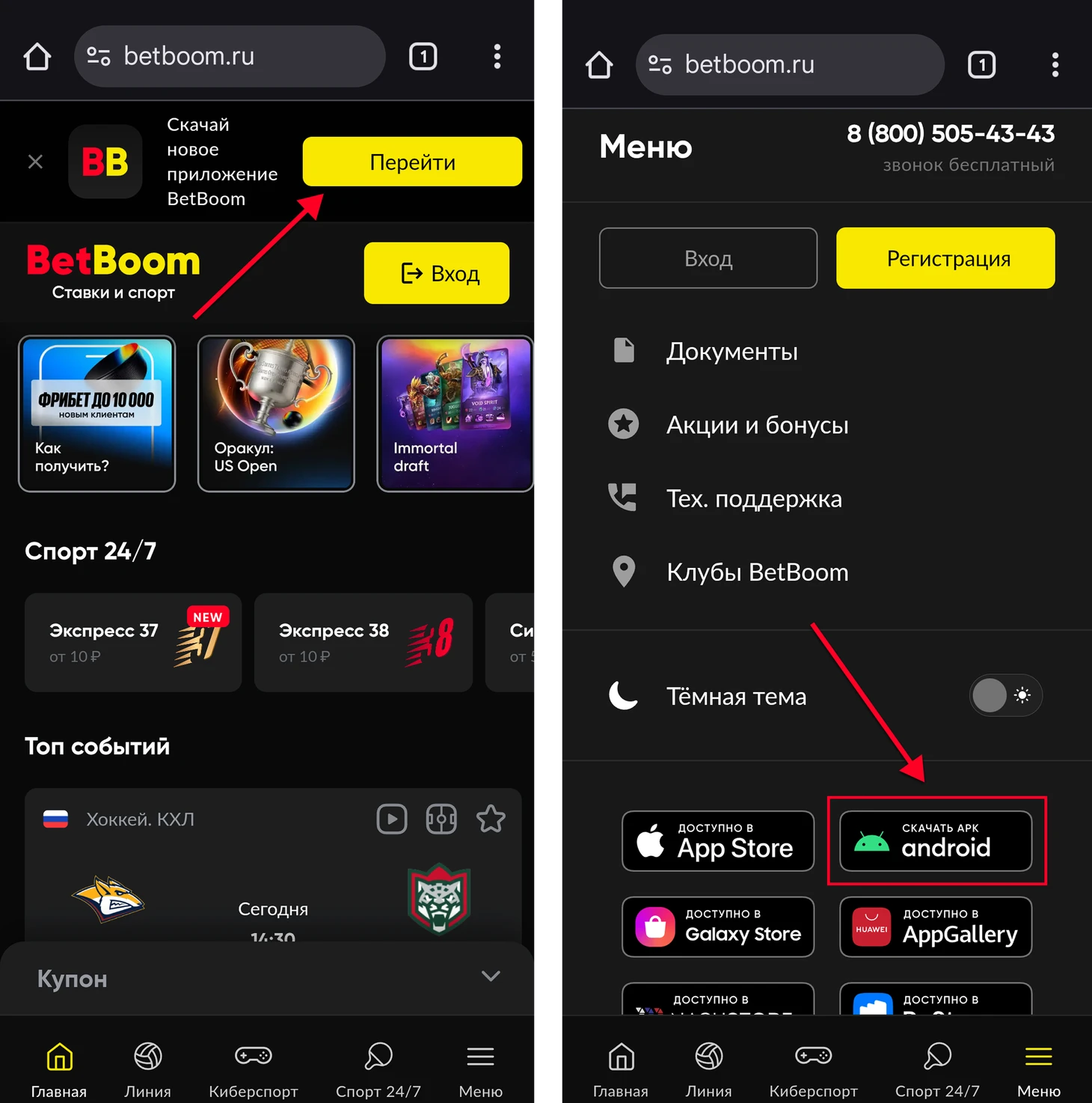 Приложение BetBoom на Андроид можно скачать несколькими способами: