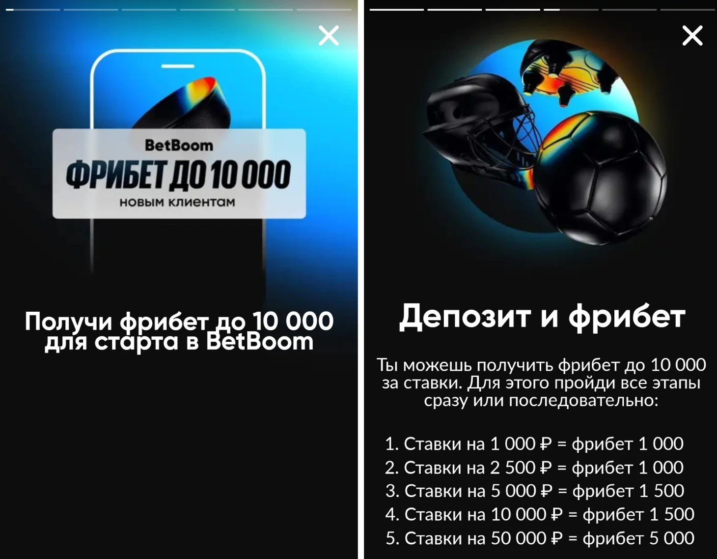 Новички, прошедшие регистрацию на сайте или в мобильном приложении BetBoom, могут получить приветственный фрибет до 10 000. Для получения бонуса необходимо: