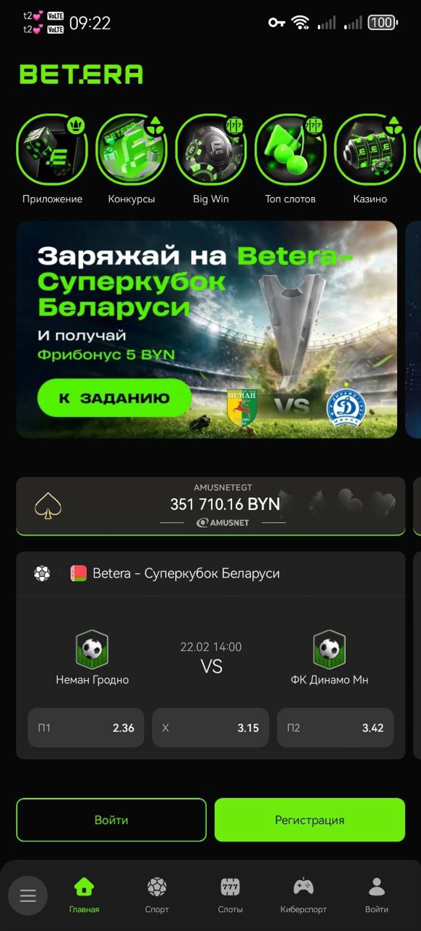 Мобильное приложение Betera имеет полный набор функций по сравнению с веб-версией. В частности, через приложение можно создать новый аккаунт: