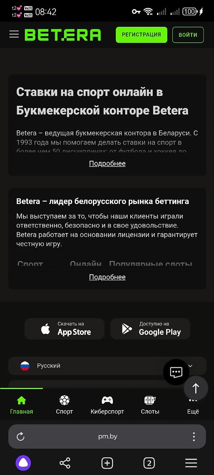 Игрокам доступен только один способ загрузки приложения Betera на Android – в виде apk файла с официального сайта букмекерской конторы.