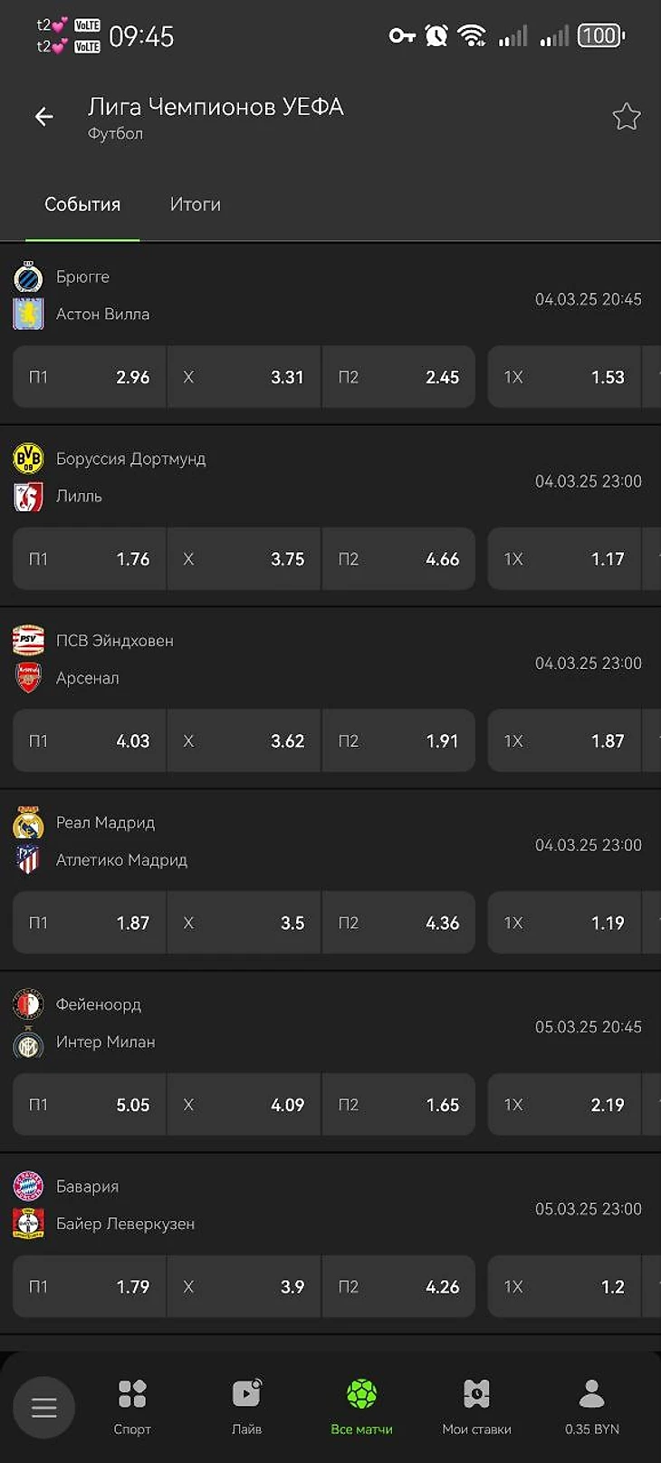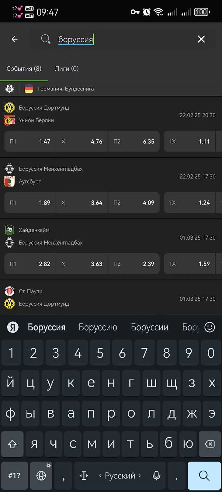 В приложении можно ставить в прематче и лайве, сортировать спортивные события по видам спорта, конкретным соревнованиям, а также дате и времени начала встречи. Кроме того, игрокам доступна поисковая строка – при вводе в нее названия команды или турнира можно получить результаты, которые соответствуют введенным данным. Впрочем, расскажем о каждом инструменте чуть подробнее.