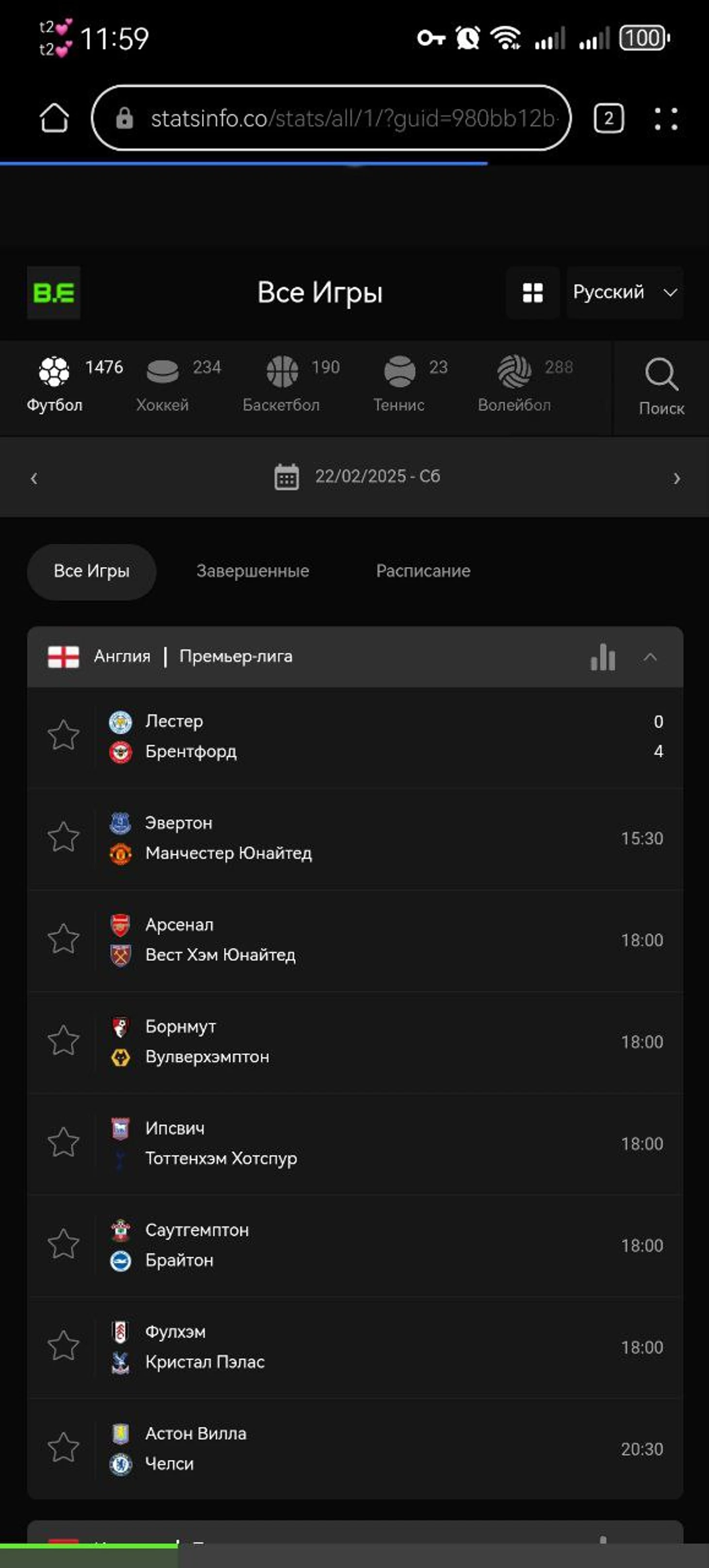 Из приложения можно перейти к статистическому центру «Бетера» на сайте statsinfo.com – для просмотра информации нужно нажать на изображение 3 горизонтальных столбцов на странице лайв матча.