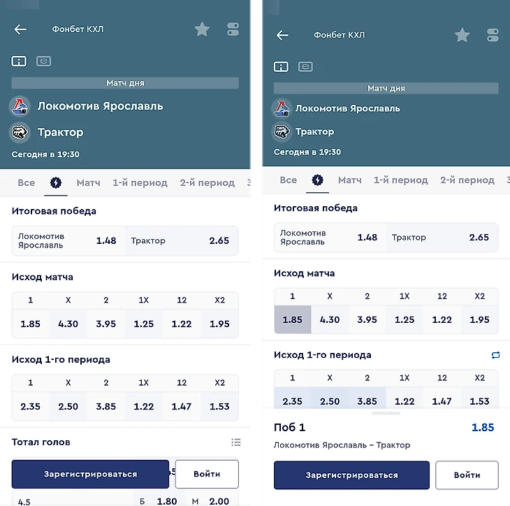 Пари одним нажатием и автоматическое принятие изменений коэффициентов, тоталов и фор