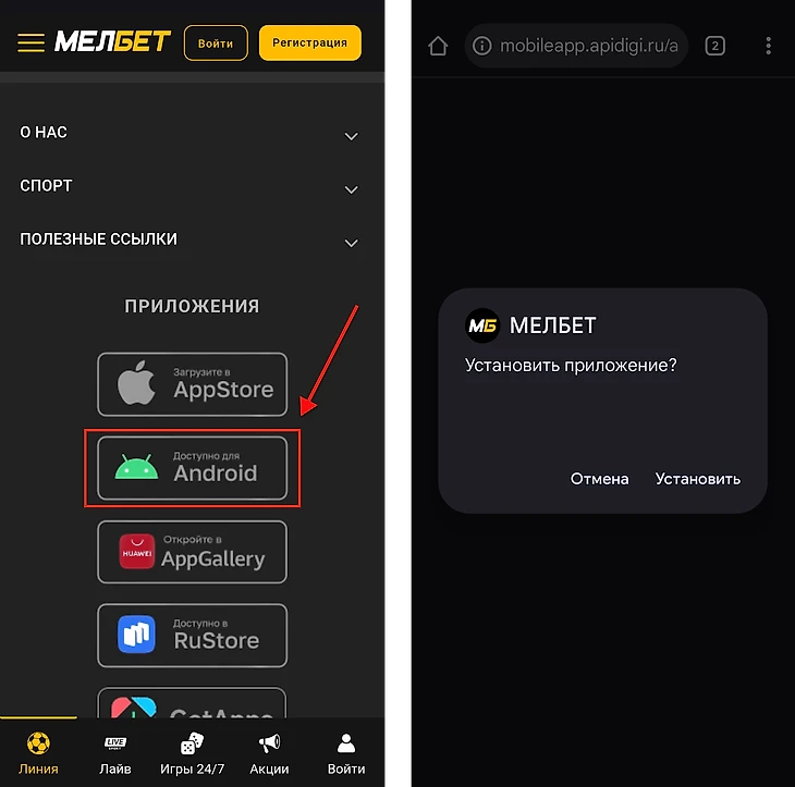 Процедура скачивания приложения «Мелбет» на Андроид: