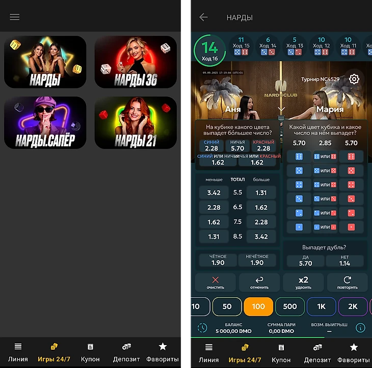 На данный момент «Игры 24/7» в «Мелбет» ограничены одной дисциплиной – нардами.