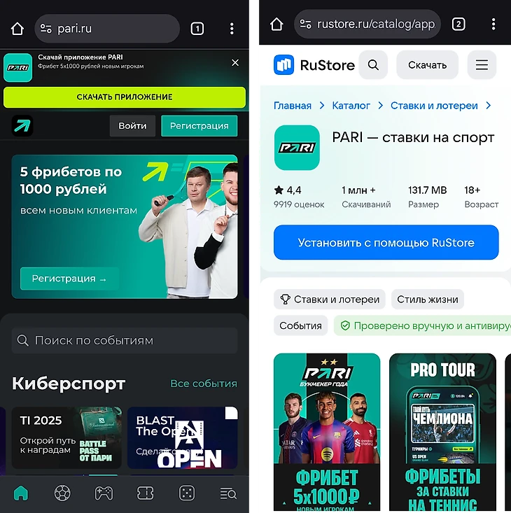 Приложение PARI на Android не доступно в магазине приложений Google Play. Такова политика компании, которая не разрешает размещать на своей платформе приложения, связанные с азартными играми и ставками на спорт. Однако у вас есть несколько альтернатив для загрузки.