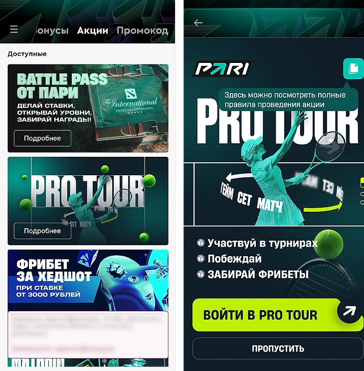 Также PARI регулярно предлагает разнообразные бонусы и акции уже действующим игрокам. Актуальный список предложений можно найти в разделе «Бонусы и акции».