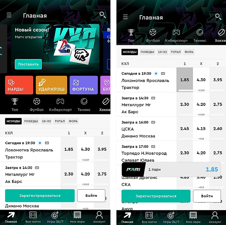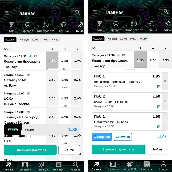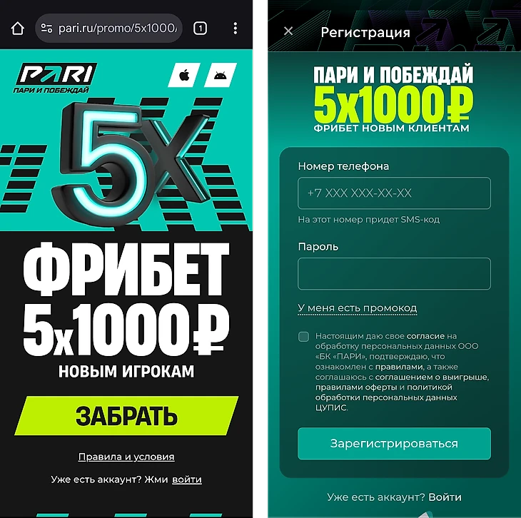 Зарегистрироваться на официальном сайте БК PARI или в официальном мобильном приложении букмекера.