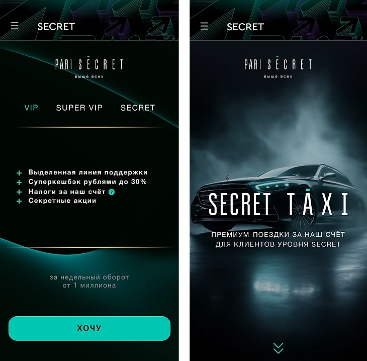 SECRET – с недельным оборотом от 30 миллионов рублей.