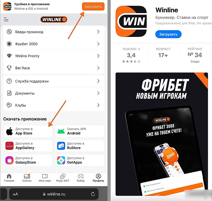 Для установки приложения от БК Winline на iOS необходимо выполнить следующие действия: