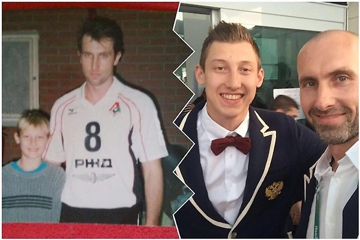 Волейболисты сборной России Дмитрий Волков и Сергей Тетюхин.  Промежуток во времени 10 лет..