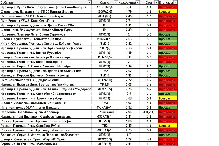 Мне очень понравились твои прогнозы на ирландский футбол. Думаю если ты будешь брать премьерки и хотя бы такие как бундеслига 1 или чемпионшип, то у тебя показатели просто автоматически возрастут!)