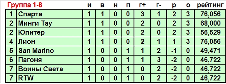 1. Edward Ilyin (1-4-7-14-17-34-38) - ParaBellum (6-11-14-25-29-34-38) 3:1 (4)