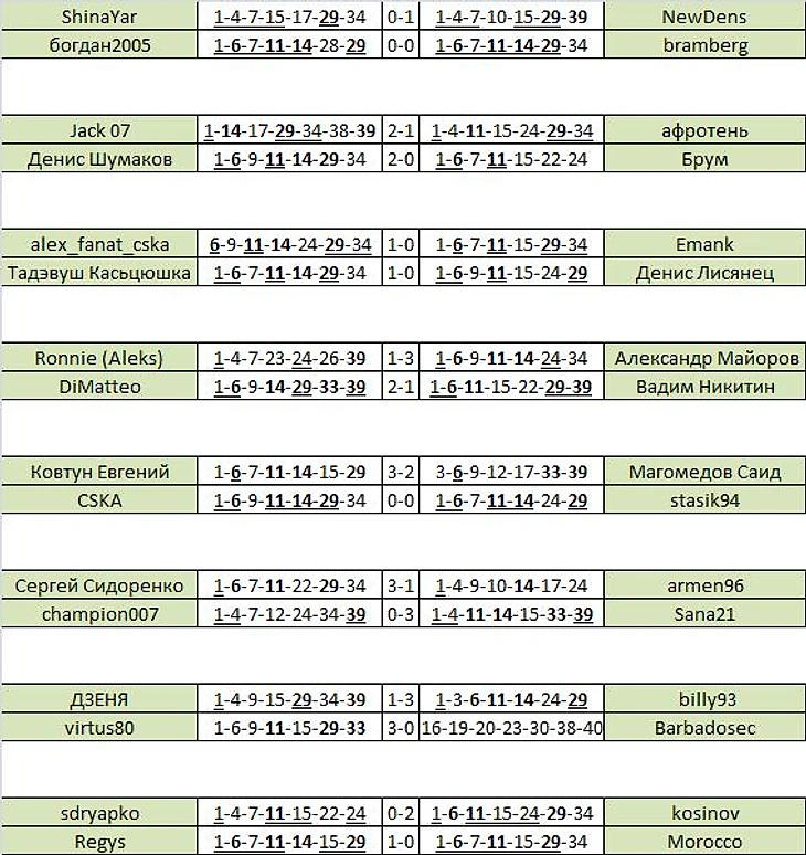 Сыграли варианты: 2-6-8-11-14-18-25-27-29-33-39