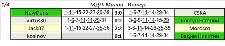Сыграли варианты: 3-4-8-11-15-20-22-24-32-35-39