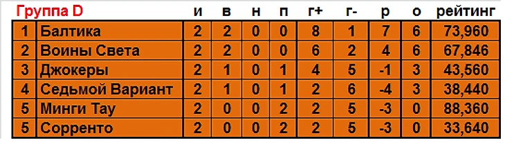1. Konstantin Kuzhalevich (1-6-9-11-14-29-35) - NewDens (1-6-7-11-15-29-35) 0:1 (2)