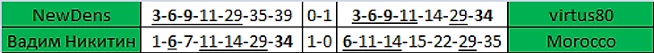 stasik94 (6-9-11-14-22-29-34) 1 - 1 (3-4-11-15-22-29-35) billy93
