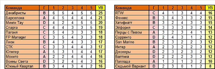Кроме главного тренера Декабристов, никто не выбил 6 УВ, ближе всех к этому были 10 человек, в том числе 3 партнёра Андрея по команде. Всем им не хватило 1 УВ до повторения максимума, и это уже не изменить. А вот свою будущую судьбу большинство команд изменить ещё может, давайте раберёмся, кто и каким образом.