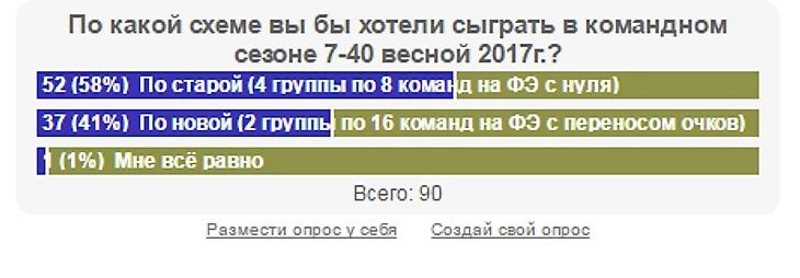 По окончании заявочно-контрактной кампании будет утверждена окончательная схема турниров, регламент и календарь командного сезона весна-2017. Формат чемпионата в общих чертах останется привычным, согласно итогам голосования, проводившегося по ходу осени: