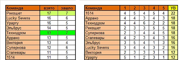 Лучшая команда  тура по сумме УВ в целом:  1514 (22 варианта)