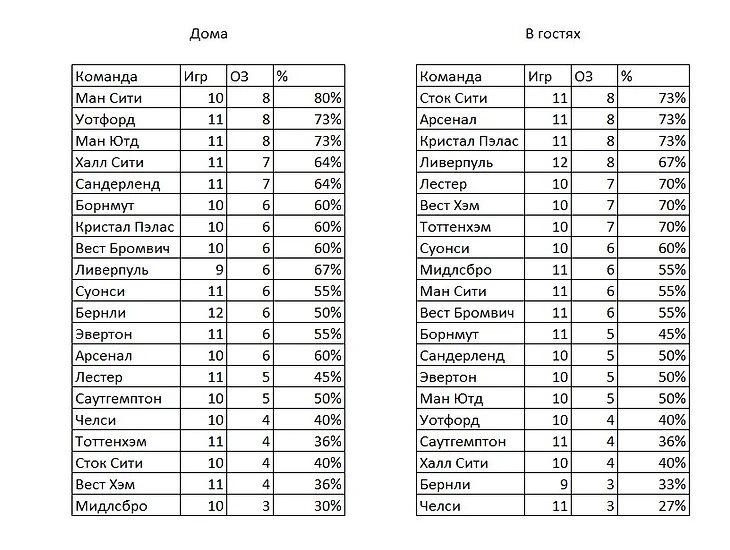 Как определить, какие именно? Есть точно такая же средняя статистика по командам. При этом, я лично придерживаюсь мнения, что нужно разделять домашнюю и гостевую статистику команды, потому что очень часто один и тот же клуб дома и на выезде играет совершенно по-разному.