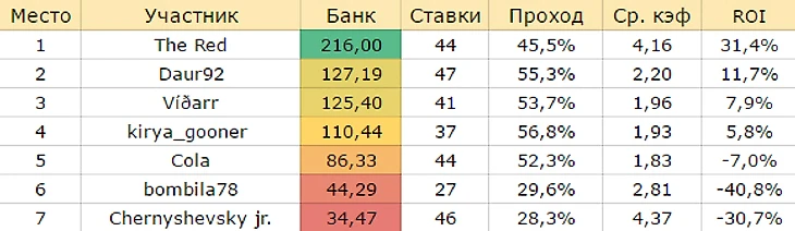 Daur92 выдал не самую удачную ставку на 20% банка. Итоги в таблице пока не подведены.