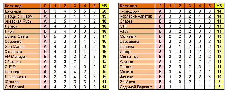 Лучшая команда тура по сумме УВ в целом: Джокеры (20  вариантов)