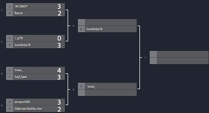 У нас уже два полуфиналиста конференций, на "Юге" Видар в тяжелейшем противостоянии смог обыграть Воронцова и выдав 4 из 5 победных ставок закончил серию победой 2-4, на "Севере" Бомбила воспользовался ужасной формой ЕдРо и повел в счете 0-3, теперь у ЕдРо нет шансов догнать Бомбилу и это выводит его в полуфинал, а в остальных сериях зарубы невероятные.