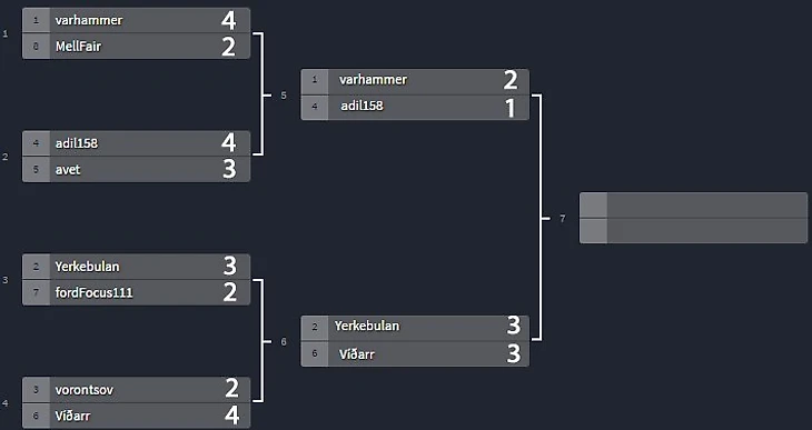 Адиль получает технари за опоздание в прогнозе, все прописано в правилах. У Вархамера появилась возможность догнать и переграть своего соперника, что он собственно и сделал, Голден Стейт не испытали с Мемфисом хоть каких то проблем, а Индиана зашла очень на тоненького, все решили точные попадания на последних секундах, буквально. И теперь счет в серии 2-1, а Адилю следует лучше вести тайм-менеджмент).