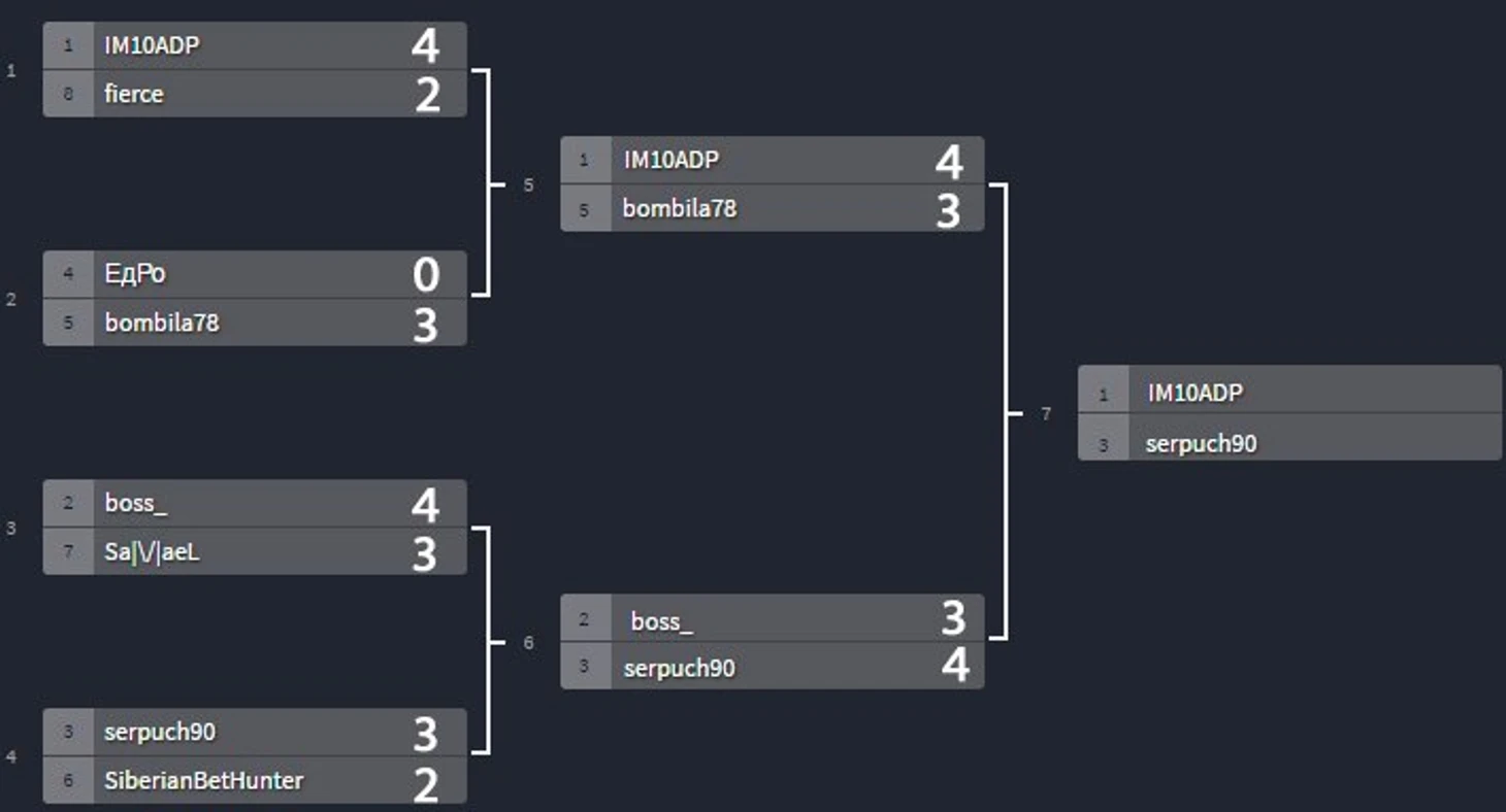 Если один из участников первым добирается до 4 побед, раунд заканчивается.